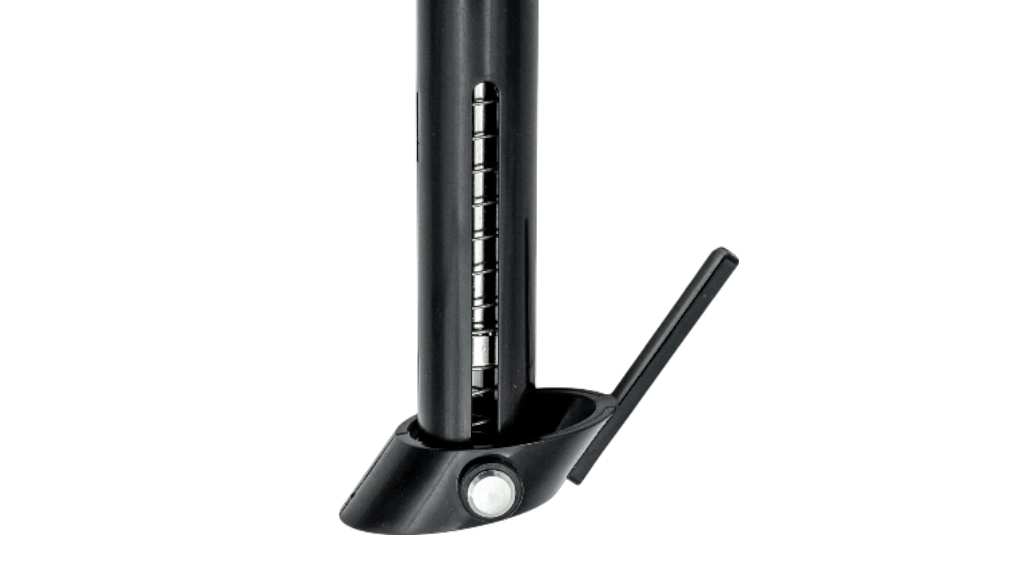 החזק את ההדרופ סטר כשהחלק הארוך שלו ישר, והכנס את הקצה שלו לתוך החור של המשקל — בדיוק כמו שמכניסים את הידית הרגילה של המכשיר.